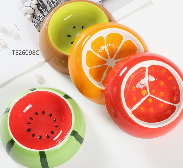 Four fresh fruit paintings (orange, watermelon, kiwi, and pomegranate), with cute and energetic appearance, saying goodbye to dull pet food bowls, and taking photos also turns out great.