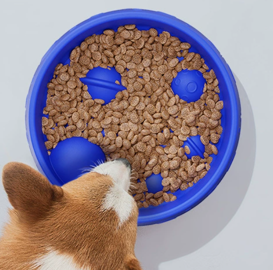 It features raised planet-shaped designs to extend the eating time, preventing pets from eating too quickly which may cause vomiting or flatulence, and protecting the digestive system health.
